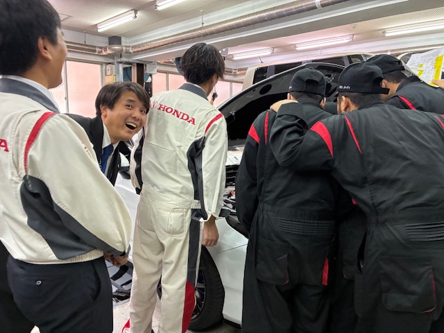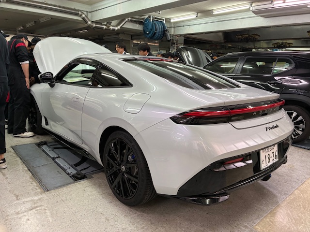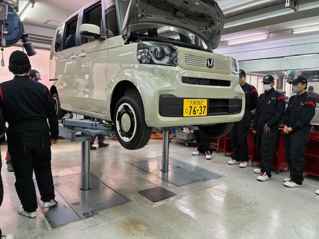先日、日本理工専門学校へ出前授業に伺いました。今回は PRELUDE、WR-V、N-BOX を持ち込み、実車を使って点検の様子を見てもらったり、学生のみなさんにも一緒に作業を体験していただきました。